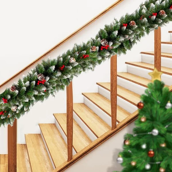 Perfect for indoor or outdoor decoration, this green Christmas wreath garland is versatile enough for stair railings, door frames, mantels, windows, and tables. Its 2.7-meter length offers generous coverage, allowing you to easily drape or wrap it wherever you want to create a cheerful festive atmosphere.